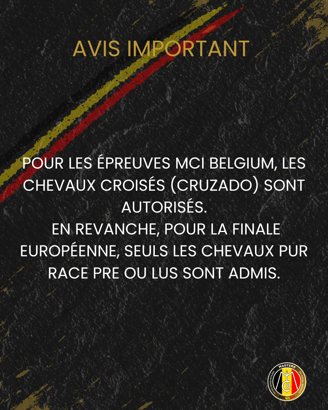 📅 Calendrier des concours MCI_BELGIUM – Saison 2026