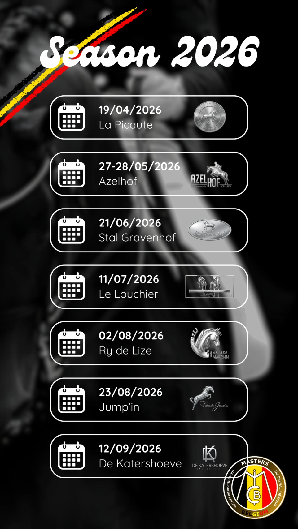📅 Calendrier des concours MCI_BELGIUM – Saison 2026