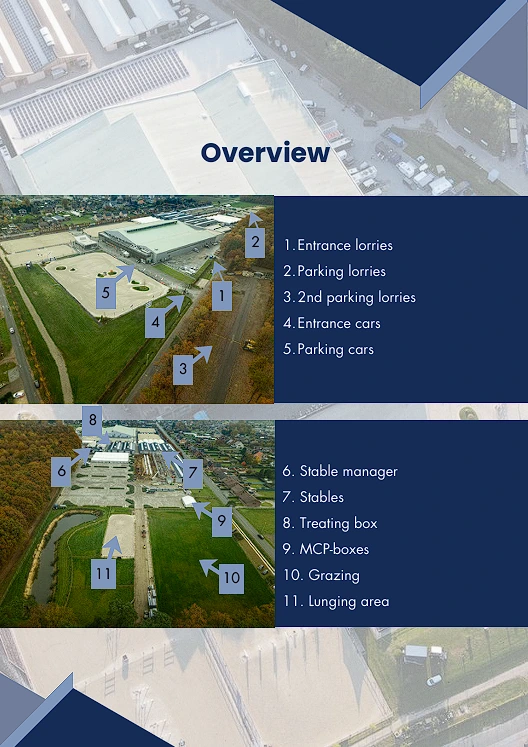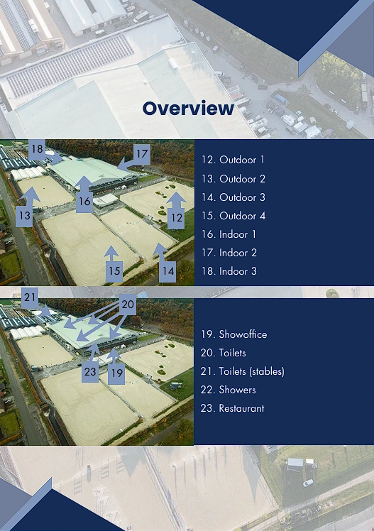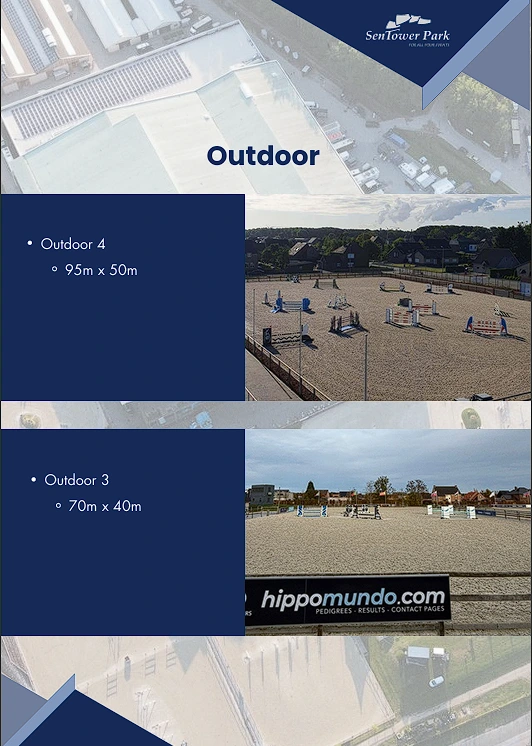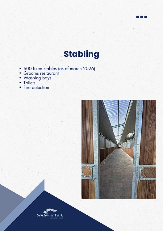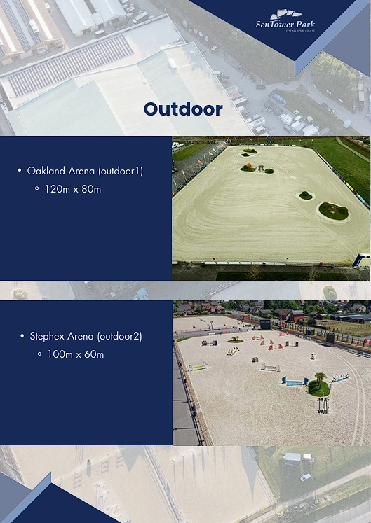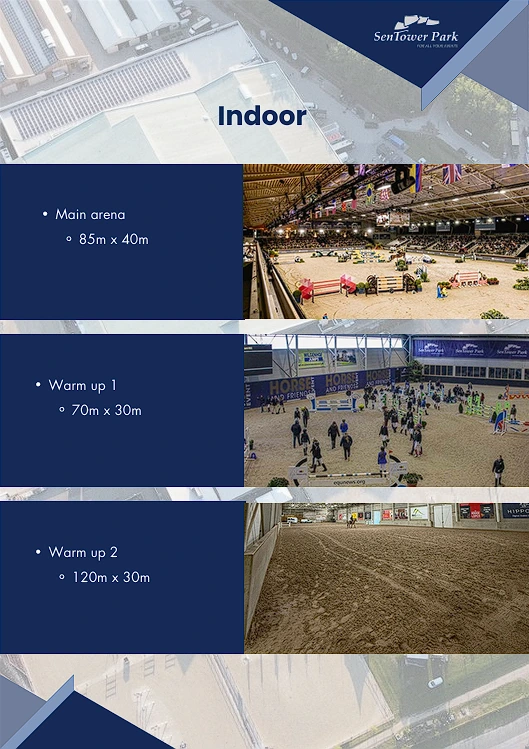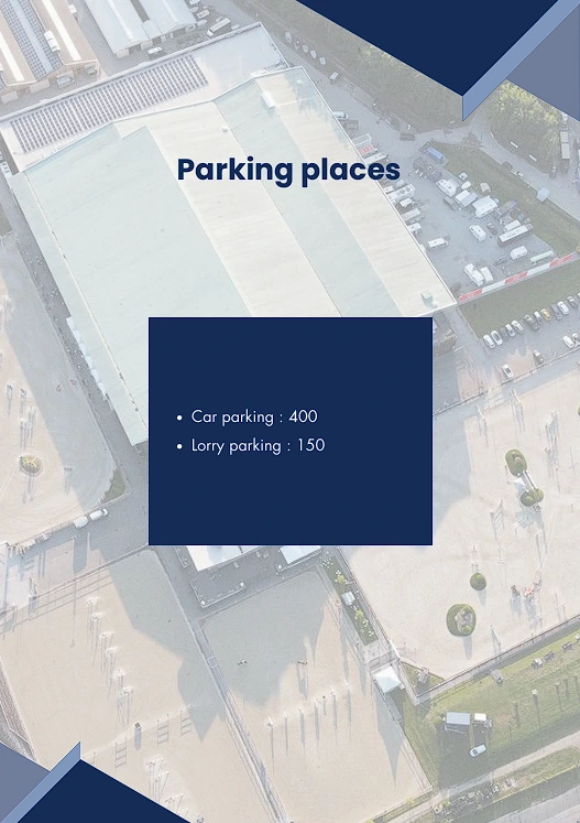 🏟️ Infrastructures Grande piste intérieure : 85 m x 40 m, avec plusieurs milliers de places2 pistes d’entraînement intérieures Plusieurs pistes extérieures600 boxes permanents dans une écurie couverte Restaurants avec plusieurs centaines de places Grand parking pour camions